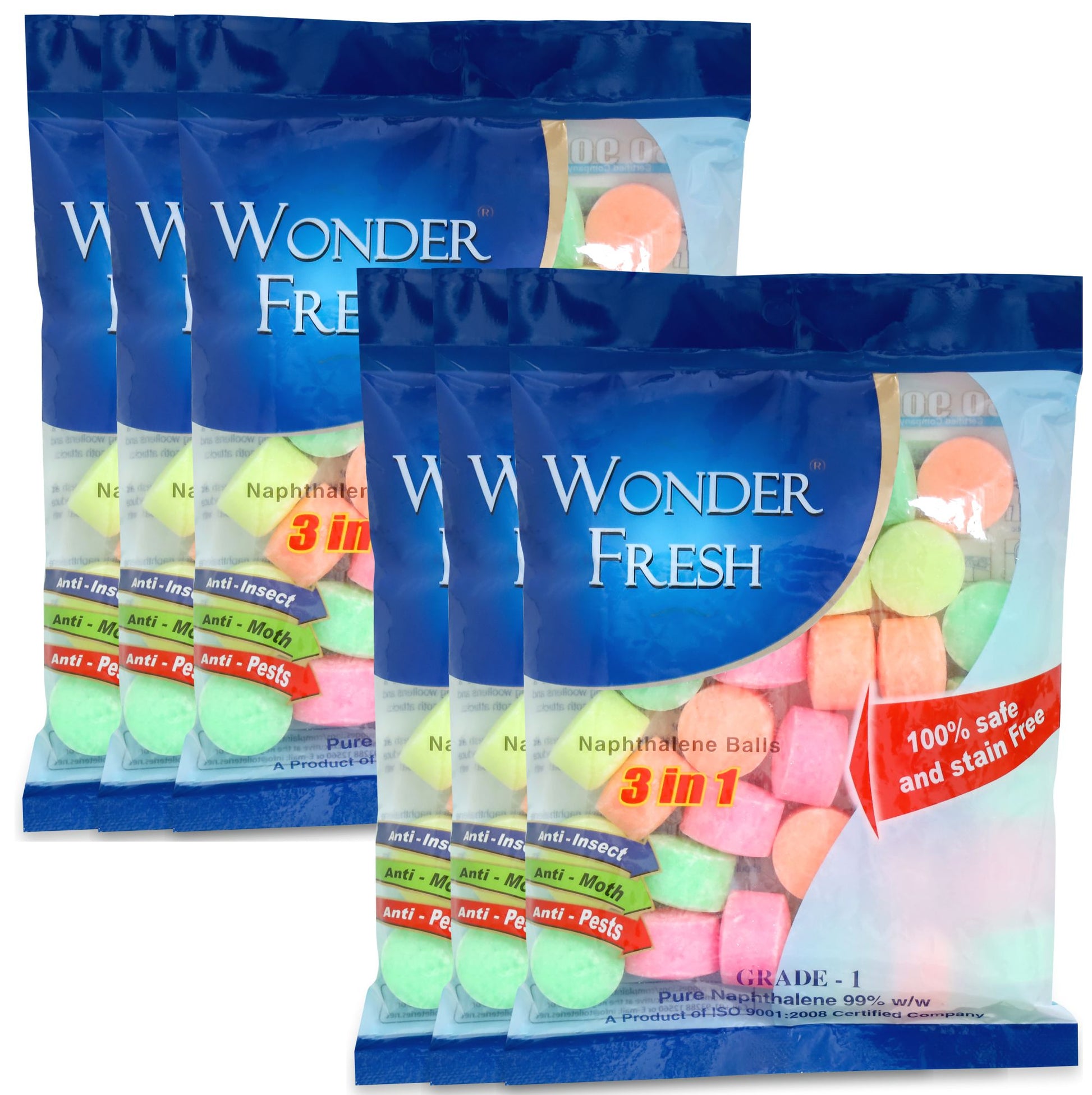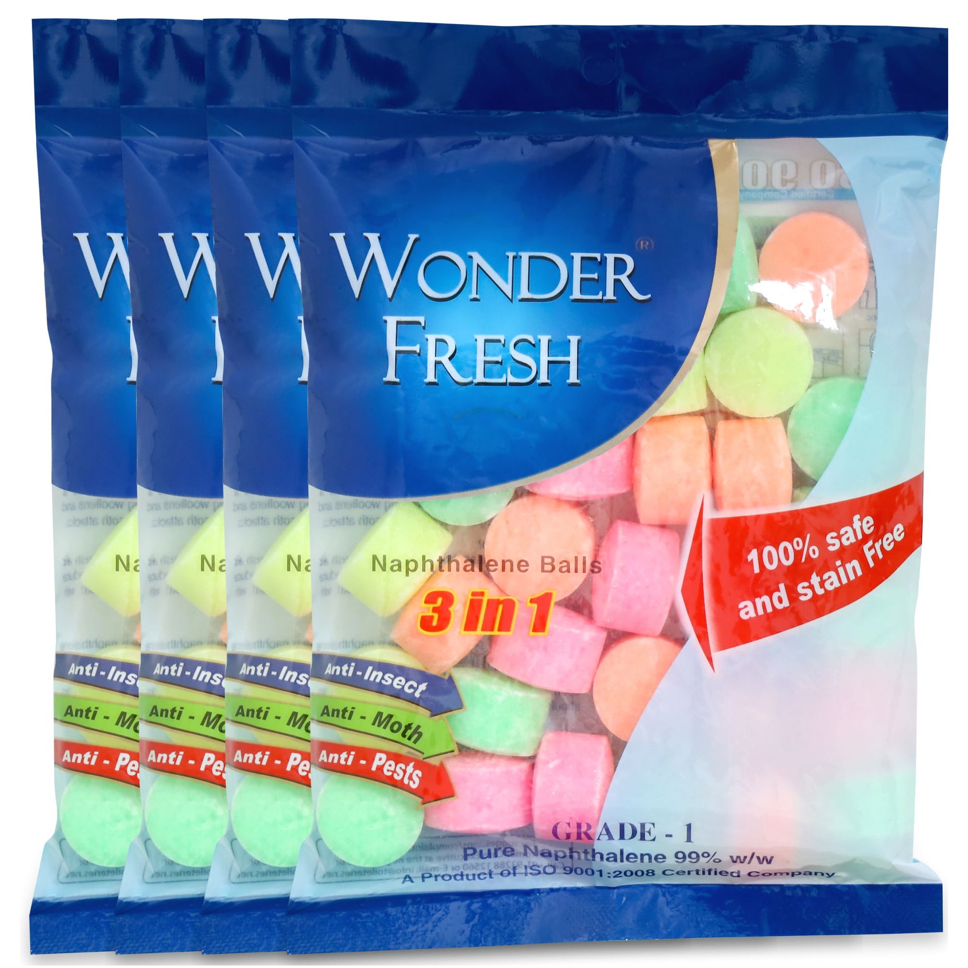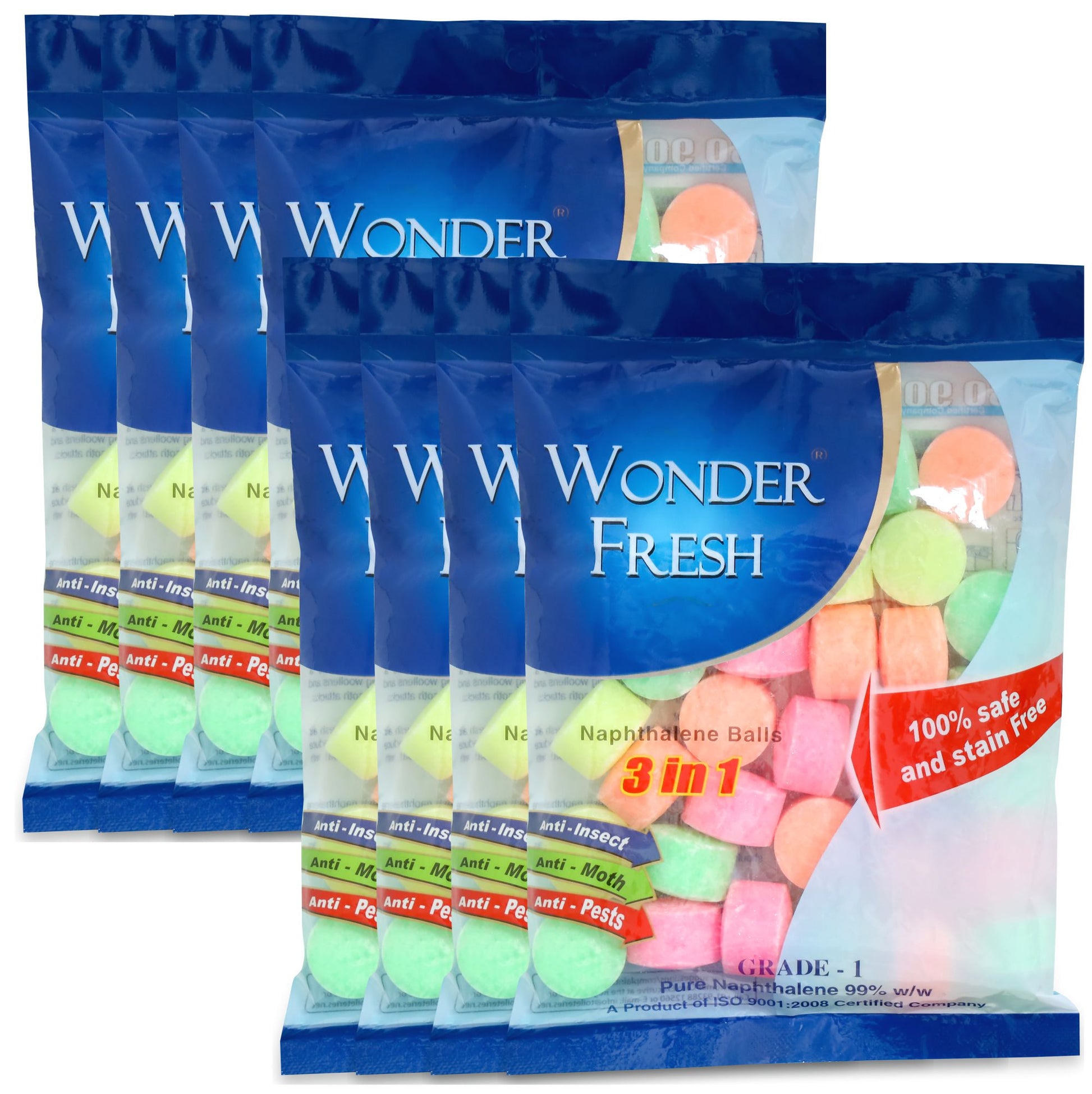 Wonder Fresh Naphthalene Balls keep your home fresh, hygienic, and protected from moths and bad odors. Specially formulated for long-lasting performance, they safeguard clothes, shoes, and fabrics while eliminating musty smells. Easy to use, just place them in wardrobes, drawers, or cupboards for continuous freshness. Designed for versatile household use, these balls ensure lasting protection for your valuables every day.